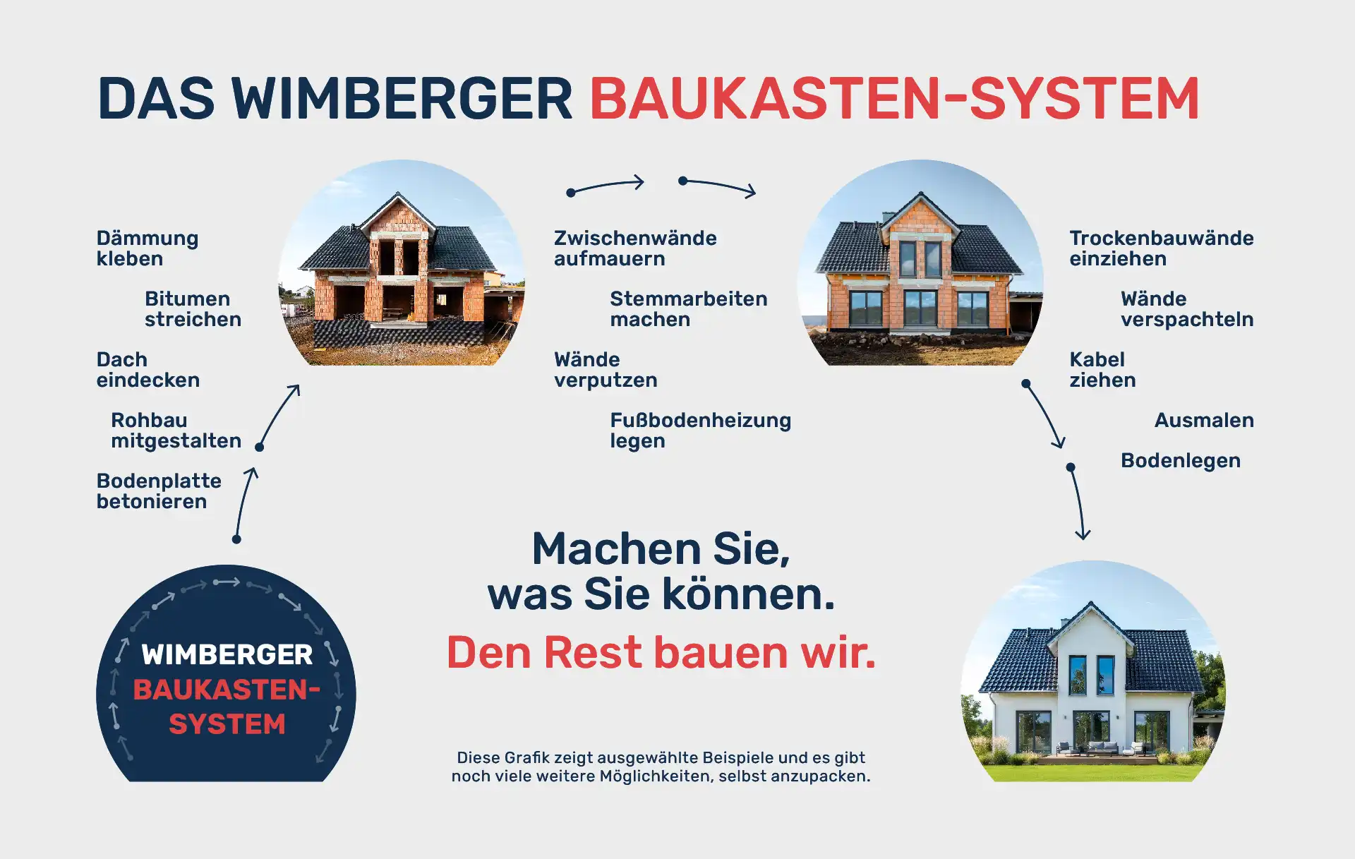 DAS WIMBERGER BAUKASTEN-SYSTEMBei jedem Gewerk bestimmen Sie selbst, wie viel Eigenleistung Sie